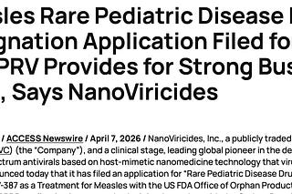 Drug company acknowledges "Measles is a rare disease in the USA" as it applies as a Rare Pediatric Disease Drug that then qualifies it for…